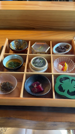 ✴︎✴︎✴︎✴︎✴︎ MOSSのシグニチャーである、 松花堂弁当から着想得た9つの豆皿前菜「SOKADO-9(ショウカドウ-ヌフ)」 には、シェフの恋する琉球食材たちが、宮廷料理の要素と共に詰まっている✴︎