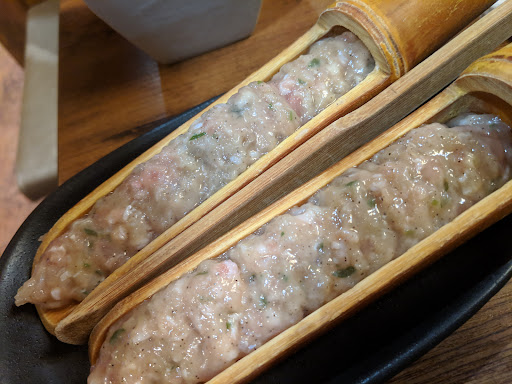 Meatballs served in bamboo was a delightful chore to scoop and cook.