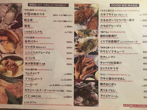 Read moreStumbled upon this place on a scavenger hunt for a replica Japanese sword and stand. I’m a raw oyster connoisseur and once I seen the outside photo menu/shells I knew I had to try. They don’t speak a lot of English so we “played” Pictionary”. They are 2 floors to this facility; reminds me of an izakaya shop. A couple tables are on the 1st floor not sure what the upper level looks like. They have a menu and chalkboard menu listing the oysters. Do not get hung up on the name they sell other items besides oysters! I had the fried squid (leg pieces) w/ garlic aioli (¥470) and fried oysters (4) w/ tartar sauce(¥777). Not a fan of white sauces so I passed on the tartar sauce but I did like the garlic aioli. If you spend more than ¥600 you’ll receive steamed oysters for free. The waiter advised/asked if I would like some hot sauce which I eagerly obliged. The shop is quiet the individual are cool and helpful. My total cost was ¥1895 for 1 person and all taxes were included. Someone mentioned in a previous review they charge a table fee, it wasn’t explained/mentioned...