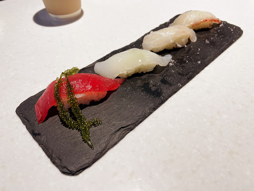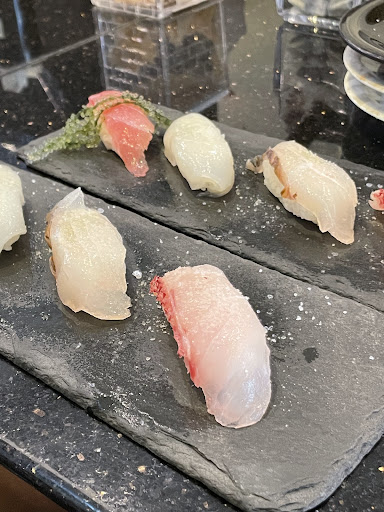 私は沖縄産のお寿司を中心にいただきました。たとえば、『イラブチャー(ナンヨウブダイ)』「ミーバイ(ハタ類のお魚)」「マチ(バケアカムツ)」「タマン(ハマフエフキ)」などのお魚をいただきました。