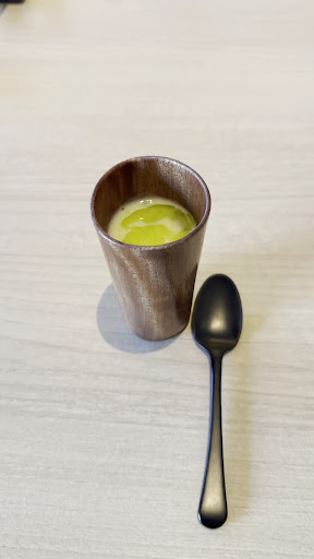 後續加點酒品「自家製シークワサーチェッロ(ソーダ)」但杯子內緣竟然有泡沫.. 這表示杯子洗不乾淨或跟一般沾到油污的餐盤共用海綿,或用自動洗碗機器,把盤子跟杯子一起進去清洗...這點我個人覺得是比較不好的地方,因為這個就能看出一家店對於飲品的品質要求。