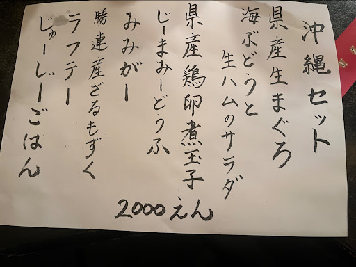 The menus are in Japanese but the owner is so kind and patient as they let us take the time to translate using an app. We opted for the Okinawa Set menu which was the perfect way to sample Okinawan cuisine. We were blown away by the tuna and the egg courses - the simplest dishes but soo tasty.