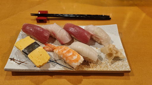 Read more5-star sushi for the price range if you order individually the single pieces, but 2-star if you order the mix plate. 3-star starters, nothing bad but nothing extraordinary. The chutoro was very pleasant, fresh and without tendons, paired with perfect sushi rice at great acidity and texture. The scallop was meaty and sweet, and the octopus was chewy in a good way. Yet the mixed platter had an over strongly fishy smell, and it was not very appetizing. Unfortunately quite a few of the seafoods we wanted to order were not available that night, I believe if we ordered every piece individually we could have an...