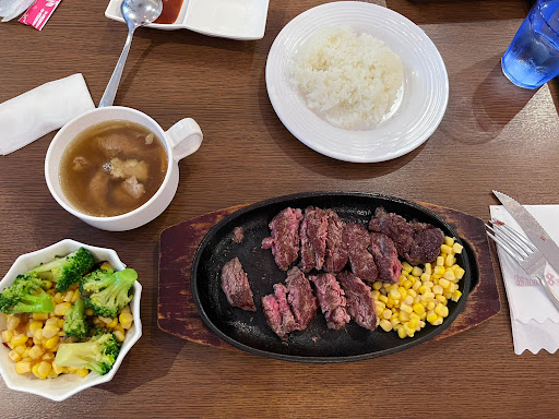 Love the location! Very close to my neighborhood and went with my bf. plenty of parking and very spacious inside. Seating arrangements are good not cramped like other locations where you can see your neighbors food and listen to their noise. Must wear a mask when entering and there's also a temperature station before seating. All you can eat soup, salad and rice. Steak prices are reasonable. All the steaks are delicious and comes with several different toppings. There are two different sauces and you can mix and match to your own flavor. Cash or credit is accepted as payment. Business operations are better from other branches, they are open daily from 11am to 11pm. Very convenient times. Able to enjoy a nice meal with your bf in peace....