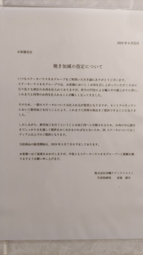 Read moreIf you are in for some good steak without frills, this is your place. They offer 200gram steaks without any sides from Y1000 and up. We had the 300gr steak with garlic and jalapeno for Y1600 with an extra side of fries. The complementary buffet offers cole slaw, soup and rice. All in all a great meal. Taxes are included in entry prices and no hidden charges. English menu available. Highly recommended....