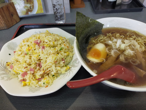 Read more「みそや堂」が閉まっていたので、先日見かけたこのお店へ。交差点をお店に向けて走ると気づかなかったけども、お店の前の道を海側(西)に向けて行くと、駐車場があることが分かる。これは点数高い。 本当に典型的な町中華のお店。 昔は沖縄にラーメン屋さんは無かったとは言っても、こういうお店はあったんだろうし、沖縄の人にとってラーメンとはこういうお店で食べるものだったのだろう。(少なくとも20世紀までは) ラーメンも海鮮やら担々麺やら種類が多いが、他中華メニューも豊富。 期待せずに塩ラーメンの「チャーハンセット」をオーダー。 典型的な町中華のラーメン。(チャーハンにおまけで付いてくるスープ、あの味) 何というか、「沖縄にもこういうお店があるんだな」と安心する感じ。