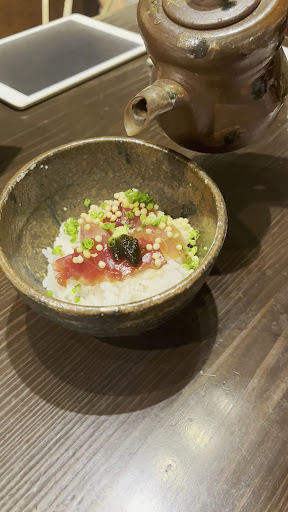 It was a delightful experience our dinner. For two, we chose kibimaru saute, ochazuke of tuna, sea grapes and for desert something similar to wrapped crepes. To finish we tried the sake HOUJUNN-ROMAN 44ยฐ, it is really strong. For two, probably you should order more food. I really loved the sea grapes. The waiters were really caring and nice. The decoration is really...