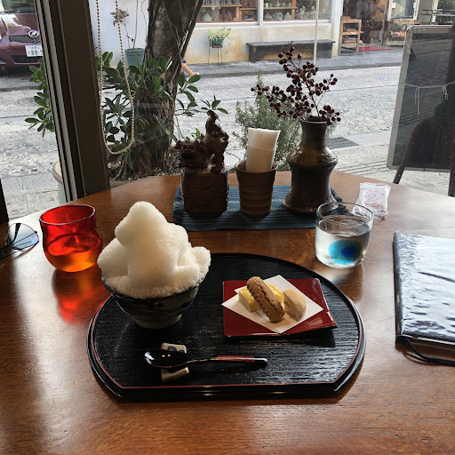Read moreIf you come to Okinawa, you should try the buku buku tea at least once!! The cloud like tea foam is made out of pure tea water (hard mineral water) and hard whipping. Nutty and grainy flavour of tea matches very well with tea cookies as well. The shaved ice can be quite alien to people who are not friendly with asian dessert (sweatened whole beans are laying beneath ice). However, the condensed milk and okinawa local treacle syrup combination is very refreshing and pleasing. Even the way they are served, they come out in very pretty Yachimoon potteries.