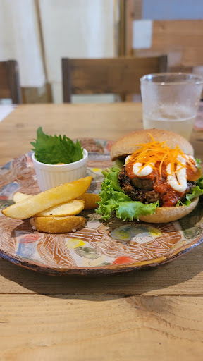 There was maybe one other person people in there, and food took quite a long time. Other than that waitress was super nice and accommodating. The environment is also very nice. They sell a lot of vegan products amongst...