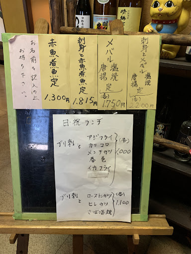 ランチのメニューは、刺身、焼魚、煮魚、フライ、とんかつと多彩