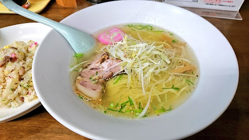 Read more目的のお店が夜営業おやすみだったので取びこみました。17:30頃だったが先客車4台だったが私と同時に3台が駐車場に。空いていたデーブルが一気に満席になり、人気のお店なのか?と。 とってもチャーハンが食べたかったので半チャーハンがセットになるものを注文味噌ラーメンセットと塩ラーメンセット。 混んでいる割に提供は早めかな。 先にチャーハンが着弾。 あまり混ざり具合が良くなくご飯の塊が残る品。ラーメンが来るまでしばし待って。それぞれのラーメン着弾。 私は塩ラーメン、スープをすすると?ん?味がしない!やばい(コロナ?)と思って相方の味噌ラーメンスープを飲むと、味がする。? まあ、ハズレの店だったのかと思いつつ食べ進めていると、だんだん味がしてきて、なんだよ美味しいではないか!最後には「美味かったー」という気持ちに。なんだか変な気分。美味しいのは確かなようだ。 そしてチャーハン。 混ざりきっていない見た目で食べるとベチャベチヤ。油?かと思うけど新米使って水分多かったから? でも、こちらも食べ進めるうちに美味しいく感じてくる。なるほどお客さんが多い理由がわかった。 帰り際の店主の挨拶も元気が良かった。けどトータルとしてはガツンとするものがなく普通ですかね(普通...
