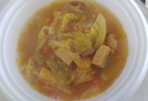 頼んだのはもつ煮。 もつ煮?と思うくらい具だくさん。 野菜に高野豆腐に、もちろんもつも入ってまして、寒い冬に食べると心底温まります、最高です。 イベントでも大鍋で煮込んでて熱々が頂けます。