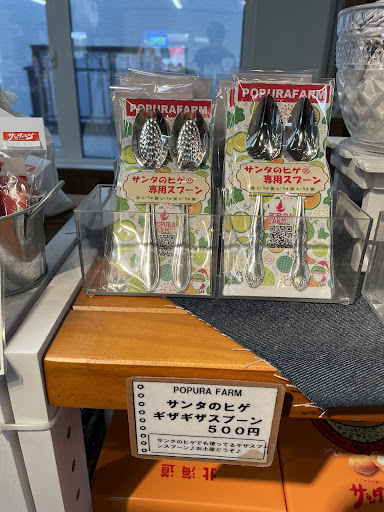 Read moreThis souvenir shop & cafe operates along the national highway in Nakafurano Town. They serve a sweet called "Santa's Beard" here, which is a melon topped with soft-serve ice cream. There are many signs along the road, so it has an impact. The name of this product is probably more noticeable than the name of the store. The name of the shop is so named because the soft-serve ice cream on top of the sliced melon looks like Santa Claus' beard.
