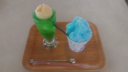 Read more去年の夏に初めて行きましたが、たいして良いと思うようなところじゃないなー 親子3人で行き、メロンクリームソーダとブルーハワイ味のカキ氷を注文しましたが、正直メロクリソーダおいしくない あの飲んだ瞬間にジュワ〜っとして爽快でっていうイメージのあの炭酸気もなければ、バニラアイスもかなり味薄かったです 混ぜて飲んだら余計不味かったですね その割には何気に値段もそこそこしたんでイラッとしました まだカキ氷のが美味しかったですよ それに女のスタッフ2人いましたが対応も悪いし、レジ対応したオバサンスタッフの相づちも「うん」でした それからお手洗いに行こうと思って一言スタッフに声かけたら、女がテンション低い暗めのトーンで「どうぞー」って言ってたのに対し、私の旦那もお手洗いのため同じ人に声かけたら全然声のトーンが違いました笑 ニコニコ笑顔で「はい!どうぞー!」とか言ってむしろ喜んでた感じでしたね ここも人によって態度が変わるそうです笑 ま、二...