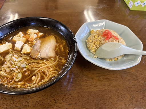 Read more外に県外車、いちげんさんおことわりします… と書かれていたので随分と前から気になっていたのですが寄ることなく通り過ぎていました。 今回、平日ということもありいつも停まっている車しか見当たらなかったので勇気を出して初訪。 独特な空間には壁に埋め込まれた水槽があったりします。 テーブルまわりはもう少し整然としててもよいかな…と。 店主さんお一人で営まれている様です。 orderはチャーハン・ラーメン。 チャーハンは特筆すべきところはないですが、塩加減がちょうどてよく食べやすかったです。 ラーメンの方は中太弱縮れ麺でツルンツルンした食感。 スープはガラと野菜でしょうか? とてもあっさりしていて甘味のある感じ。 ツルンツルンしてる麺がこの甘味のあるスープをちゃんと口の中に運んでくれるので、なんか楽しい気分になる一杯でした。 ちなみにランチタイムはラーメン類表示価格の¥-100ということで、ラーメンの単品だと¥350ですね😲 店主さん、腰を痛めている様でしたの...