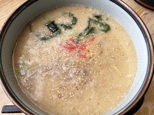 This is an awesome cute little ramen restaurant. I loved the atmosphere with the stove in the middle and the 6 different item ramen was delicious. Broth was complex and synchronized well with all the different ingredient. Must give this...