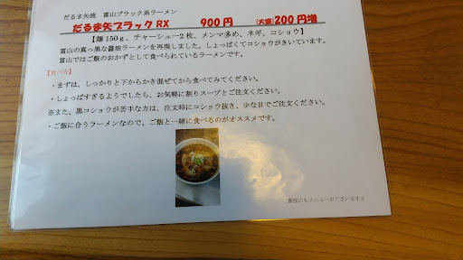 久々に寄りました。昼過ぎの1時近くですが、三連休の中日の日曜日なので、待つ覚悟で行きましたが、運良くお客さん全員はけた後だったみたいでゼロ。 小次郎ラーメン自分大盛、嫁並みで注文しました。その後ぞくぞくとお客さん来て満席。タイミングよかったです。 ラーメンはいつもどおりおいしかったです。ごちそうさまでした。 ↓過去今日はだるま矢のラーメンが食べたくてそれを目的に行きました。13時前の一段落した頃をねらって行き、待たずに入店出来ました。自分「小次郎大盛味濃いめ」、嫁「濃厚にごり醤油」。 うまいです。定期的に食べたくなります。また来ます。 ごちそうさまでした。 ↓過去 今日は開店前に並んで入りました。自分「小次郎大盛背脂増」と「ミニもつ煮丼」、嫁「濃厚にごり醤油ラーメン」と「ミニチャーシュ丼」、娘「味噌次郎」。 どれも美味しくいただきました❗️ ラーメンにうるさい娘も「ここはおいしい」と絶賛してました。 「もつ煮丼」は少し甘めでした。 また行きたいです。 ごちそうさまでした😋 ↓過去 やっぱりうまい❗ 「小次郎」「大盛」「脂増し」です。平日のお昼ですが、ニンニクは普通に入れてもらいます。ニンニクが入って完成品で...