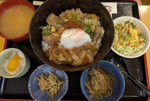メインの丼のみメニュー写真に載っていましたので丼しか来ないと思っていました。なので、少し割高だなと思っていたんですが実際はどれも小鉢2品、汁物、デザート、お茶(冷 温両方)付くのでいい意味で裏切られましたが全体像の写真があったほうがよかったです。 また、目当ての海鮮丼を始め計2品の欠品が入店前にはわからなかったので、店外の表示があればなお嬉しいです。
