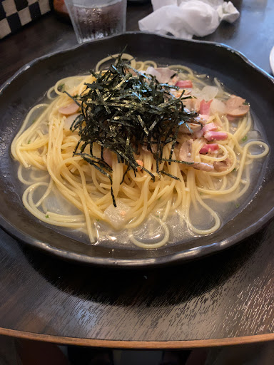 お店のおすすめは、やはり「明太子カルボナーラ」。明太子のピリッとした辛味と、ブラックペッパーのスパイシーさが絶妙に融合。こねぎがアクセントになり、クリーミーながらも飽きのこない仕上がりです。お皿の底にたまったソースをしっかり絡めると、まさに至福の味。思わず会話が止まり、無心で食べ進めてしまうほどのおいしさでした。