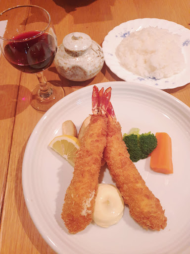 A small homey restaurant with a retro vibe. Such a great service from the old couple who runs the place . We went here for dinner. I got the Ebi Fry Set which comes with a glass of wine, salad, rice & black coffee at the end of the meal. The food was good. It was served freshly cooked. I just wished there was a tartar sauce with the Ebi Fry. Still enjoyed our meal here.