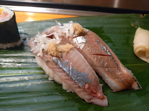 今日のMVPは鯵です! 半身1貫の小さい鯵を使用、その味わいは圧倒的で きめ細かい身は口の中でとろけ、脂ノリノリでした。