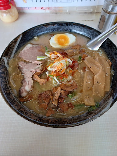 Read more11時開店とのことでしたが、11時になっても全然暖簾が出てこないので店前で待っているとお店の人に入っていいと言われて入店しました 燃える闘魂ラーメンという珍しい名前に惹かれて頼みましたが、名前から勝手に辛いラーメンだと思ってましたが、焦げたニンニクチップ入りでラー油がかかった甘めの味噌ラーメンでした とにかく焦げたニンニクチップが苦くて、やわやわの麺を平らげるのがやっとで、スープはほぼ全残しでした… 正直なところ、十勝の寳龍の中では浦幌の...