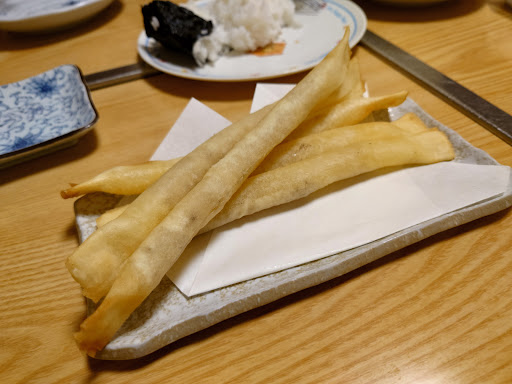 Izakaya restaurant located on the 3rd floor. Enjoyed the chef's special of sizzling Yakiniku beef, and fried kampachi Kama (each JPY900). Zangi (JPY1000) was moist, and not greasy. Grilled tebasaki was delicious too (JPY500 for a pair). Washed it all down with giant mug of Kirin Beer at JPY1600. The waitress can communicate with some English which made the dining experience easier, especially...