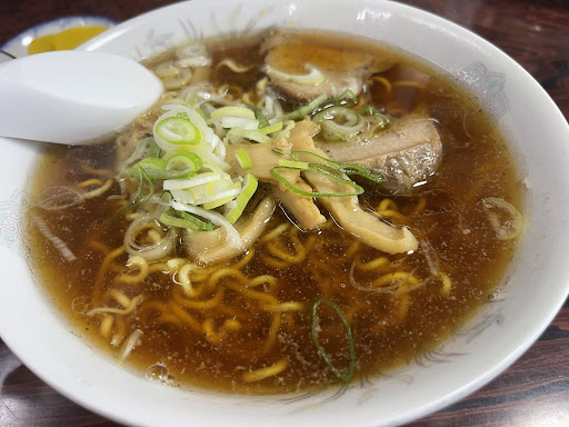 写真では濃く見えますが実際は薄めの醤油にラードが薄く浮かぶ。 あっさり目で美味しいスープ。完飲でもしょっぱく無い。 中太玉子ちぢれ麺で食べ慣れた安心感。 チャーシューは小さいが厚めだった。多分その時の切り方によるのだろう。 中長のシナチクと長ネギ。 最後まで安定感のある、街食堂のちょっと...