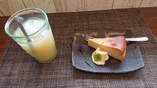 Read more時々利用させてもらってますが、この日はニューヨークチーズケーキとアップルジュースをいただきました。 ランチもですが、素材に気を使ってるので安心した食べれます。猫でいえばゴロンとなって、おなかを見せた状態です(かえってわかりにくいかな?🙀) カウンター席から庭が見れるのですが、綺麗にされていてついつい長...
