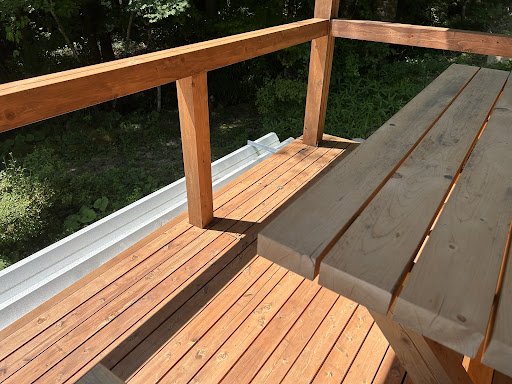テラスの景色は木立の中で、風通しも良く、環境がとてもいいです。子供はブランコで楽しめるので、良かったかな。のんびり森林浴しながら待つつもりで行けるといいかな。