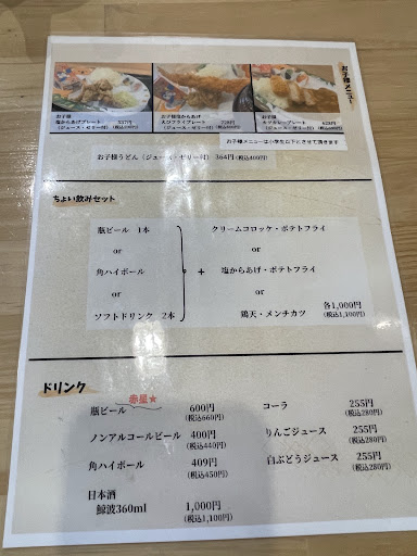 メニューは霧島ロースカツ、霧島ヒレカツ 特製エビフライ、塩からあげ、ヒレとロースと海老フライ全部の盛り合わせの福すけなどの膳ものに味噌カツ丼や卵とじのカツ丼、鶏天丼、カツカレー、ざるうどんやざる茶そばなどがあり、それにちょい飲みセットもありましたね。