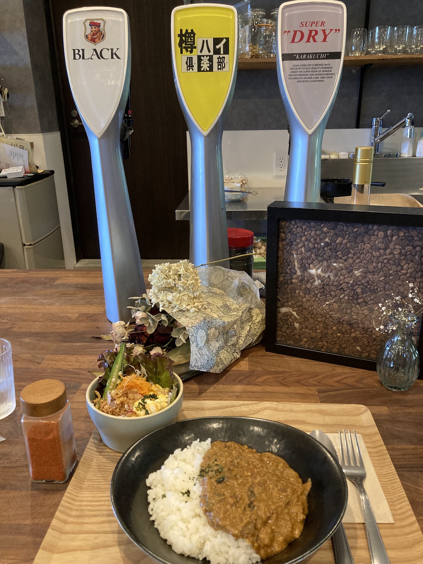 Read more中津川市付知町の住宅街にあるカフェ&ダイニングバーのお店。日曜定休で9〜16時営業、夜は予約制だそうです。 ランチタイムに伺いました。 店内はおしゃれでテーブル席とカウンター席があります。ランチは4種の中からチョイス、サラダとドリンクが付きます。ドリンクは全てのメニューでテイクアウトも可能だそうでお願いしました。キーマカレーを注文、ひき肉と野菜の旨みが感じられて美味しいです。お好みに応じてと、スパイスもご用意くださいました。ローゼル(ハイビスカス)メニューもありました。ハーブティーがお好きな方はお気に入りになると思います。今日は大暑、暑い夏に爽やかな飲み物はいかがですか?! オーナーご夫妻も気さ...