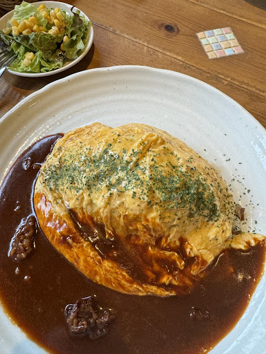 My partner and I both enjoyed their omurice with hayashi sauce. Portions were generous and included a small salad and karaage on the side. The egg was super fluffy and soft, and the sauce had a slightly tangy and sweet flavor. Not too rich, so it did not overpower the taste of the egg and the rice.