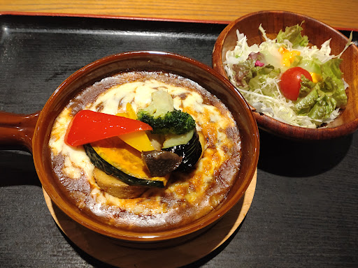 ぐったりした注文を経て料理が運ばれてきました。その時は若めの女性店員の方でしたが、こちらも丁寧とは言えず… 「蓋そのまま持ってきますね」とばっととってさーっとはけていきました。 両者ともに忙しかったのかしら?と思いつつ、そんなにお客はいたかな…?席の3割程度でしたけど。 温泉施設ないとは言え一応宿泊施設も併設されている食事処、小汚い定食屋や中華屋見たいな接客でびっくりしました。 もちろんありがとうございましたの声もなし。 しかし食事自体は美味しくいただけました。