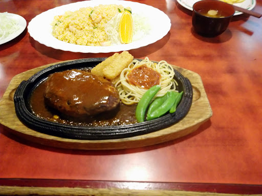 食べるまでは、まあよくある昭和っぽい洋風和食レストランとおもって、たいして期待していなかった。がしかし、ハンバーグはきっと手ごねなのか、しっかりとうまかった!いつも自宅近くにある贔屓にしているところの煮込みハンバーグを大絶賛しているが、こちらは焼きハンバーグで、店独特のソース(デミグラス系)がかかっていて、ちょ〜うまかった。アツアツだし、しっかり肉肉しくて、大好き。妻の「イタリアン」というナポリタン的な炒めケチャップ系スパゲティのソースも、たぶんハンバーグにかかっているソースがベースになっているんじゃないかな。「イタリアン」もしっかり炒められていて、うまかった。ポテトフライも、もしかすると普通のじゃがいもを輪切りにして揚げているのかも。うまかった。そして、ピラフ。ハンバーグを食べてからピラフに行ってしまったが、エビピラフの香りがしっかり炊かれて染み込んでいて...