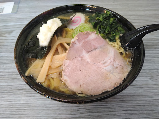 醬油ラーメン1玉増し500円+150円 オープン価格 ぬーぼう中山店みたくモバイルオーダー システムが採用されているが 口頭注文も可能だと思われる。 醬油ラーメンはすりおろし玉ねぎが トッピングされている。
