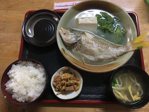 A local restaurant with a very cheerful lady serving us good value local food. The provide varies set meal including Soba noodles, Sashimi bowls, Whole fish cooked in different way, etc. At the beginning she served each of us a glass of chilled barley tea, which is very considerate in a hot summer weather. The food is delicious too! The terrace is full of shell-made crafts including a heart-shape hanging decoration and the lady encouraged us to take photo there! There are many decorations made with shells as well in...