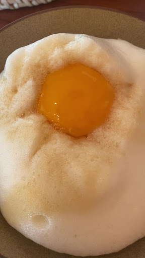そして卵かけご飯+100円でできますが 卵白をふわふわに。そしてそこに黄身をちょこんとのせていただくスタイルが新鮮でした^^ 他にあまりないものなので、こういうの嬉しいですよね。