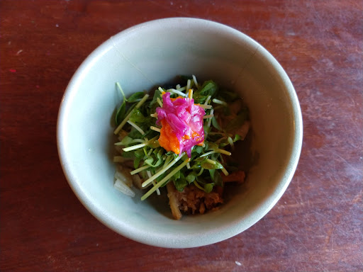 Incredibly, the place is actually very cozy on the inside, and the meal we had ended up being a highlight of our trip to Okinawa. It's a 1-person operation so the service isn't the fastest, but I believe this humble chef deserves so much praise. We tried the curry and a couple of other dishes, which were absolutely delicious. Looking around us, the noodles also looked amazing. We left wishing we had enough room to try everything else. I'm quite positive you could try anything here and be pleased. What we had was fresh, tasty, and presented with such thoughtful preparation. You could taste the love and care the chef put into his cooking, and the depth and fusion of flavours was unlike anything one would typically experience in Japan. I highly recommend dining here; I don't think anyone would regret it!