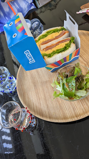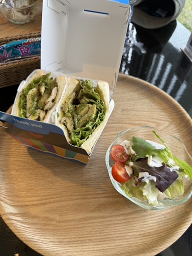 Read moreThis is a café with a beach in the back. This time, I ordered the pork and chicken sandwiches, and they were delicious! The pork had a teriyaki-like flavor, with a balanced mix of lean and fatty meat, following the Okinawan pork style. The chicken sandwich had a basil pesto flavor, which was very fragrant and not greasy. The chicken was juicy and tender, without any dryness.