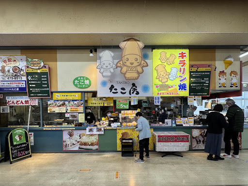 こちらのたこ焼きは美味しい。 銀だこみたいな揚げたこ焼き的な特殊なものでなく、普通の王道たこ焼きであるが、外側は程よくカリっと、内側はトロリとして驚くほど軽い。 内側が軽い理由は、たこ焼きを返す技術が高く、手際よく90度ずつ返されるため、外側が効率よく焼け、中央部分が空洞になるからだ。 〝水に浮く〟ような技術で焼かれたたこ焼きはなかなか食べることは出来ないと感じている。 自宅でも、家庭用のたこ焼き器は3台持っているが火力の弱い電気たこ焼き器ではまず無理だし、イワタニのガスたこ焼き器でも手返しが遅いとこのようには出来ない。大玉がメインの祭りの香具師とはもちろん比較にならない。 出来ればお持ち帰りではなく、フードコートで皿に乗った焼きたてをご賞味いただきたい。 きっとたこ焼きのイメージが変わるはずだ。 出てく...