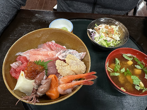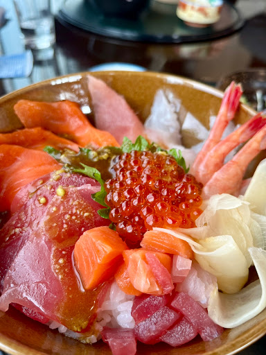 We had to wait about 10 minutes because the restaurant was very busy. The interior design isn't my style, but the view of the ocean is absolutely stunning. Although it took a while for the food to arrive, it was worth the wait. The Kaisen Don was incredibly delicious. The fish was very fresh, and the prices were reasonable. You definitely can't get that in Tokyo for such...