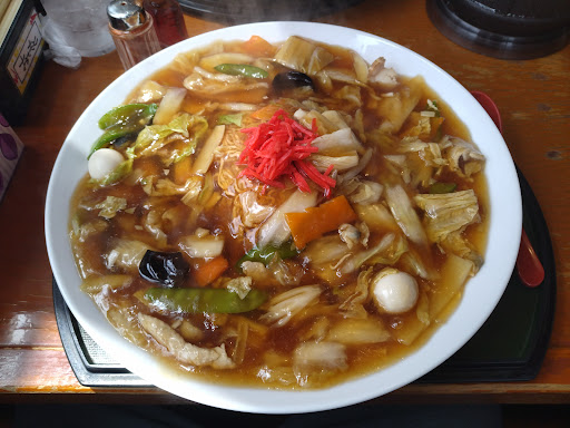 常連さん達はあんかけ焼きそばをよく注文されてます。 確かにこれも美味しいです😁 私の好みでもあるのですが強火で野菜を炒めているため白菜の少し焦げた良い香りと甘みがします(o´艸)(o´艸)量もしっかりしているので大盛りなんて頼むと普通方は残してしまうかも。