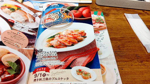 Affordable, new (as of 2018) “Italian” family restaurant along a main street. Ample parking for cars and bicycles. Easily accessible on foot, about a 15 minute brisk walk from Nanao train station.