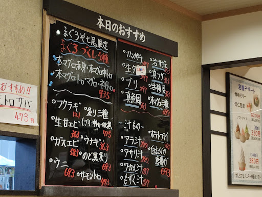 Read more夕御飯を食べに回転寿司まぐろやに来てみた。 お盆時期の来店だったので漁に出ていないためネタ切れしている品が多かった。 食べたのが日替り5種(金目鯛、生サーモントロ、カンパチ、うなぎ、マグロ赤身) タコのサラダ軍艦、バイガイの刻み軍艦、あら汁、白えびの唐揚げ、イカ三種盛り(紋甲いか、ヤリイカ、真イカ)、エンガワ炙り(写真撮り忘れ)、イワシ(1個食べた後に撮影)、のど黒炙り、ポテトフライの10皿。 どの寿司も美味しかった。旨味十分でイロイロ食べ比べが出来た。 あら汁も色々な部位が入っているのか、色々な魚が入っているのかわからなかったが、とびきり美味しいアラがあって満足出来た。 おすすめにポテトフライとあったので注文してみたら普通のフライドポテトだった。 予約なしで、能登の寿司を食べられるのがありがたい。 ただ、イマイチだったのが、注文する時に注文書に書く方式だったこと。途中まで気づかず直接注文していた。金沢の回転寿司のタッチパネル方式に慣れていたので、とても面倒だった。 それと...