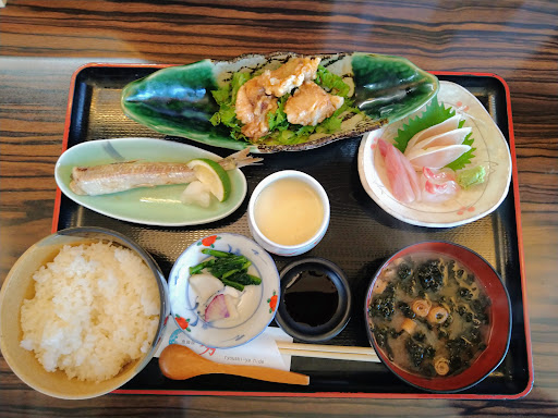 Read moreランチで伺いました。 店主のおまかせ定食を食べました。 メギス(たぶん)の塩焼き、お腹に白子が入っていて、身の方にも油がのっていて、良い塩加減でいい焼き加減で身がふっくらとしていて美味しかったです! お造りは白身魚の三種で、内心は「えっ?」っと思ったのですが包丁の入れ方や調理の仕方でそれぞれの良さを引き出して美味しいって思う前に「すごい!」って思いました。美味しかったです。 唐揚げ、たぶんフグかと思います。衣はサクッと身はフワッとタレというのかドレッシングといえばいいのか、クセのある味で個人的に心にヒットする味でたいへんに美味しかったです。素材や使う材料がいい分たぶん調味料の組み合わせはとてもシンプルなんだろうな?なんて思いました。 トロットロで汁だくの茶碗蒸し、すごく印象的で美味しかったです。匙で掬う(漢字あってますかね?)のですが、その時からほろほろと崩れます。口に入れてもスープを飲んでいるかのようで歯に当たりません。衝撃でした。 お味噌汁もご飯もたいへん美味しかったです。 お客さんが並ぶってほどではなかったですが、ひっきり無しにお客さんがお店に来ていました。食べ終わったお客さんもお会計をすぐ済まして席をあとにする、なんか阿吽の呼吸というのか、地元に愛されているな‼なんて思いました。 主人の指示や段取り素晴らしかったです。 自分は料理は素人ですが、勉強になりました。 ここまで書いて読み返してみてなんか大袈裟なような気もしてめちゃくちゃ恥ずかしい気分ですがこのままアップします。 このお店は友人に紹介してもらったのですが、感謝です🙏 長文にな...