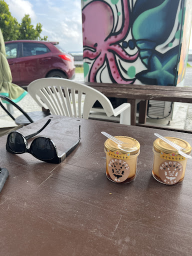 私たちは猫に会うために奥武島へやって来ました。 天ぷら屋さんから歩いてくる途中、たくさんの可愛くて人懐っこい猫たちに出会いました。 道端でこのプリン屋さんと看板猫を見つけました。 店主さんはとても親切で、優しくて温かい方でした! 私たちはプリンを4つ購入し、食べながら猫たちにチャオチュールをあげました。 とても癒される時間でした❤️ さらに、店主さんが私たちの素敵な旅の思い出として、たくさんの写真を撮ってくださいました❤️ 次回また訪れたときには、一緒に写真を撮れたら嬉しいです😆 奥武島へ行く機会がある方に、ぜひおすすめしたい素敵なプリン屋さんです!