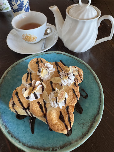 Do not take this average rating as a reason to not try it out. When stopping by at an establishment like this one not many expectations are set. All I assume people would want from a place like this is the food to fill them for the time and not taste bad. Especially spots by the beach. They are just convenient for when one is enjoying the beach. I ordered a few things: first I started with the scones, which had a side of jam and whipped cream. I put the whipped cream on the scone first, then slapped a glop of jam on the cream and took a good bite of the scone. It was delicious! I finished the scones off quick, so I recommend ordering four. It is really good. What followed was a cake with a side of whipped cream and nut sprinkled on top. The cake is pretty much just a sweet bread that gets sweeter with the cream, although the nuts give it some personality; still, nothing to fancy. What followed was cinnamon toast. My friend liked it, but it was mediocre for me, but I know others would enjoy it. I am simply not a big cinnamon guy, but it helped fill me up. The tea I ordered was actually not great, but did not ruin the decent experience. I would return just for the scones, and maybe ask for extra nuts for the cake and whipped cream. Overall, it is a place that is good for the view and to take some friends. Chill on the beach while getting a sweet...