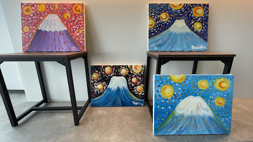飲み物を細かく聞いてくれるので、自分がまるでアーティストになった気分でいられました。面白いのが同じ絵を選び、同じ工程で進めたのに、行ったメンバー全員の色味が全然違ったこと!!みんな違ってみんないい作品ができました。そしてお家に飾れるレベルの絵になったので、ほんとに家に飾ろうと思います。家に帰って娘に見せても、センス良すぎと褒められました♩