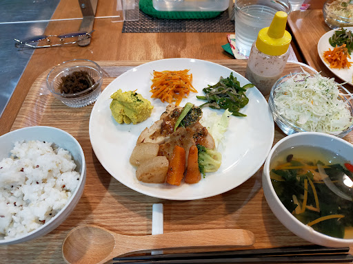 日替わりプレートを頂きました。 薬膳スープは味が薄いですが、体に良さそうなお味でした。 お魚と土鍋ご飯がとても美味しかったです。 ご飯は量が選べるので良いです。